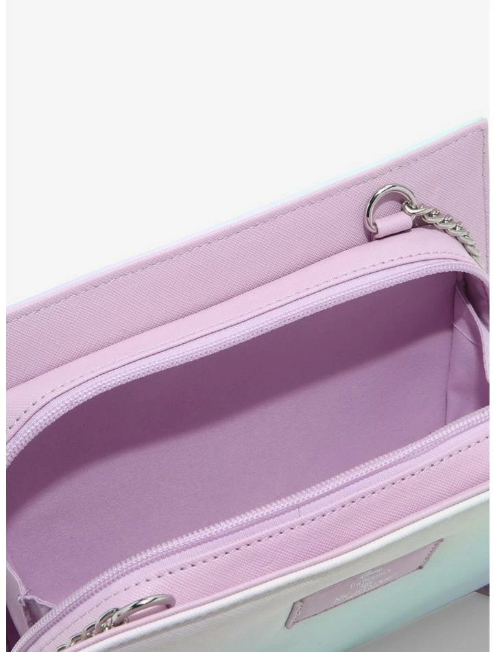 Β We sense there’s something in the wind… or maybe it’s in the cards. Either way, Jack Skellington is here to bring some frightful fun to your accessories! This crossbody bag has a pastel ombrΓ© design and features a tarot card-inspired print of Jack on the front. Complete with a chain and faux leather crossbody strap and a top zipper closure.Β