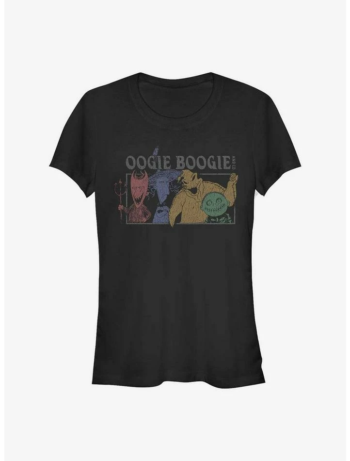 Make way for Oogie Boogie and Co.! This fitted, lightweight black graphic tee — inspired by The Nightmare Before Christmas — features the infamous boogeyman himself along with trick-or-treating trio Lock, Shock and Barrel.